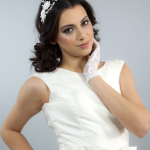 Manusile scurte mireasa din dantela alba sunt un accesoriu elegant si delicat care pun in valoare rochia de mireasa.