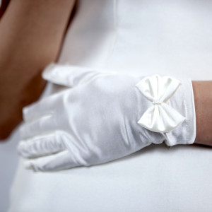 Alege cu incredere manusile scurte din satin ivory daca porti o rochie de mireasa in aceeasi nuanta.