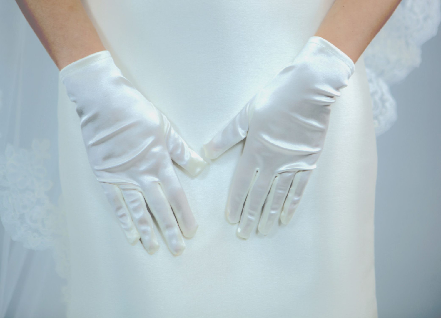 Manusile scurte satin ivory sunt accesoriul care poate completa tinuta de gala a oricarei femei.