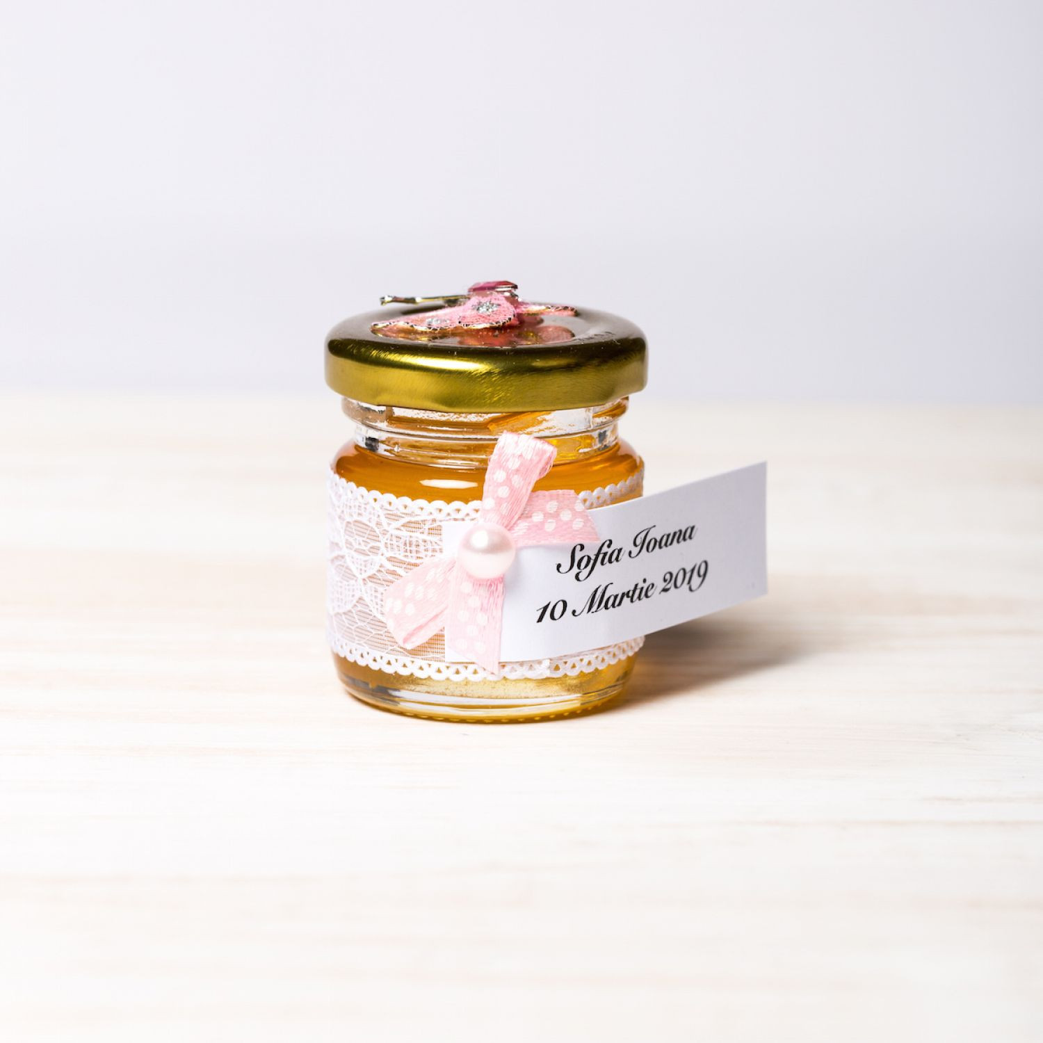 Personalizarea produselor este GRATUITA. Borcanelele sunt umplute cu miere poliflora.
