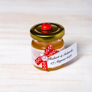 Acestea sunt pregatite cu drag de noi pentru ca oaspetii sa se bucure atat de designul borcanelelor, cat si de miere.