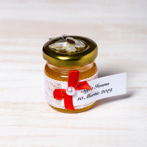 Pentru ca parintii unui ingeras ce urmeaza sa fie botezat doresc ca fiul sau fiica lor sa aiba o viata dulce ca miere, acestia pot organiza un botez cu meniu traditional la care sa ofere invitatilor borcanele umplute cu miere si decorate cu festiv cu dantela alba, fundita rosie cu perluta in mijloc si fluture alb pe capac.