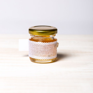 Pentru un botez de iarna cu irizatii de argint, parintii unui bebelus pot darui invitatilor prezenti la petrecerea de la restaurant marturii dulci sub forma de borcanele miere decorate manual cu fundita argintie si dantela cu fir argintiu.