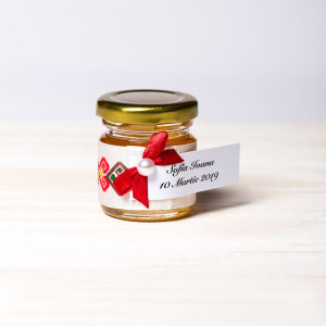 Borcanelele miere botez se ofera celor prezenti la petrecere personalizate cu eticheta.