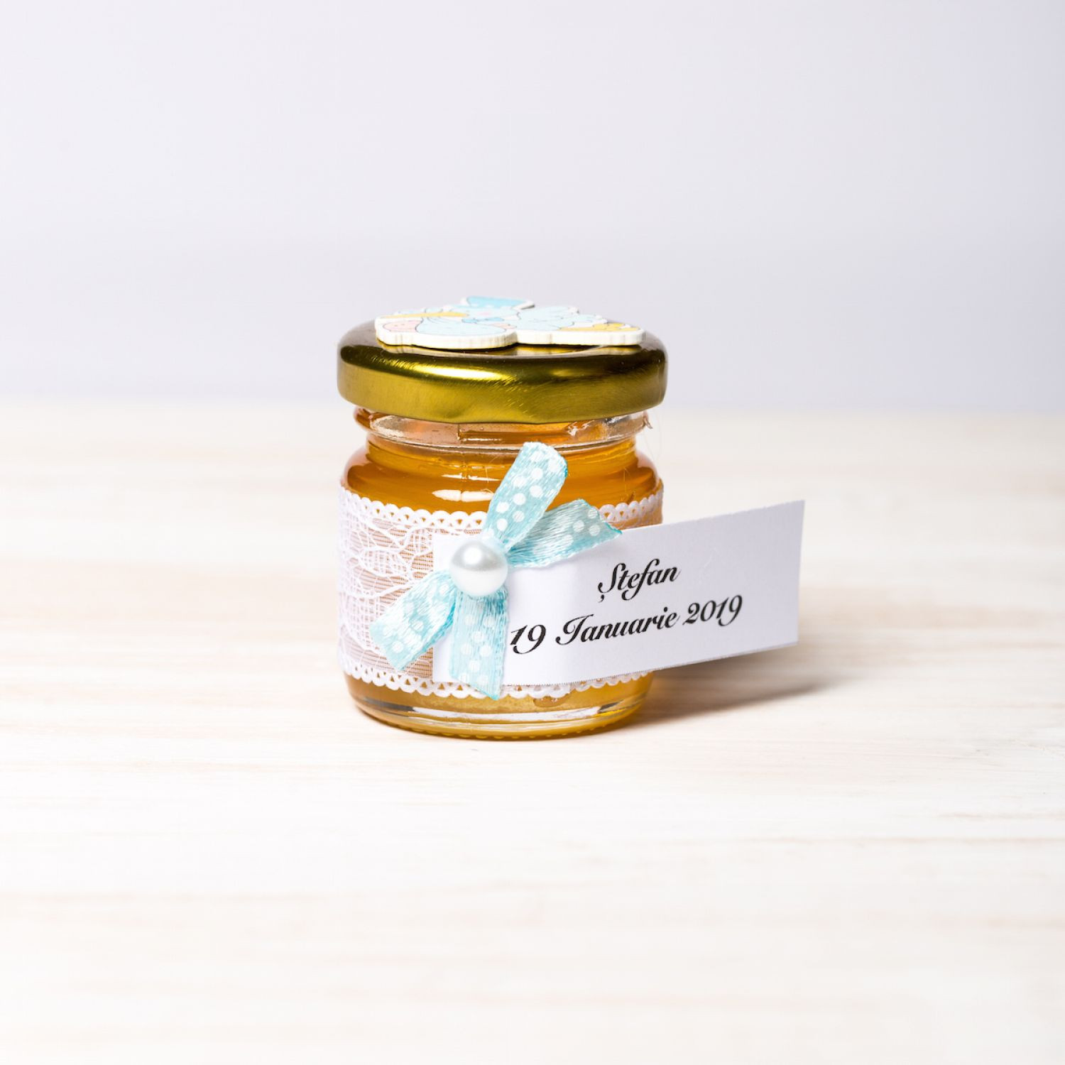 Borcanelele de miere sunt printre cele mai populare marturii botez. Dupa ce invitatii consuma mierea, borcanelele pot fi umplute cu alte ingrediente culinare: sare, piper, boabe de cafea sau bomboane.