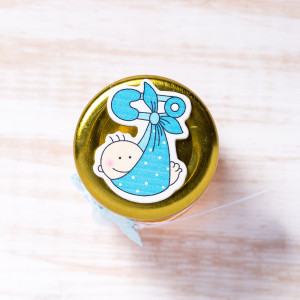 Se apropie mult asteptatul botez al baietelului tau, iar pentru acest moment special te-ai gandit sa faci o surpriza placuta invitatilor? Atunci ofera celor dragi marturii sugestive decorate cu o banda din dantela alba, fundita bleu cu buline albe si figurina baietel adus de barza.
