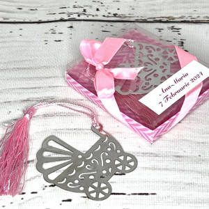 Avand un design atractiv si sugestiv pentru un bebelus, semnele de carte carucior sunt adesea daruite la petrecerea de botez a unui copilas.