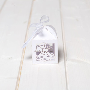O data asamblate si umplute cu bomboane, cutiutele se asigura cu o fundita asortata din organza.
