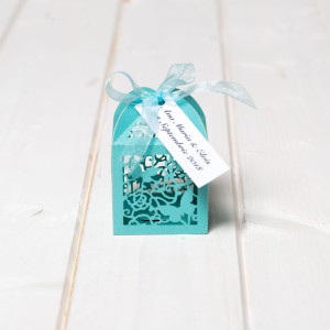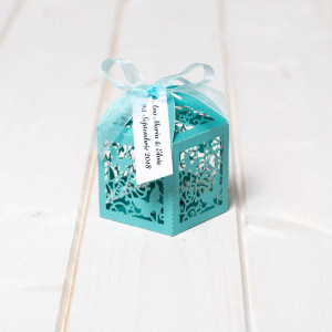 Dupa cununia religioasa, mirii pot oferi invitatilor in semn de multumire pentru prezenta lor la eveniment mici atentii sub forma de marturii dulci, iar cutiutele cu model laser cut fluture bleu sunt o alegere deosebita.