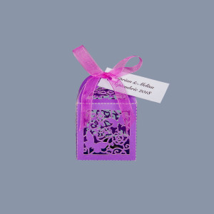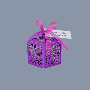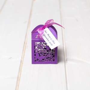 Dupa cununia religioasa, mirii pot oferi invitatilor in semn de multumire pentru prezenta lor la eveniment mici atentii sub forma de marturii dulci, iar cutiutele cu model laser cut fluture mov sunt o alegere deosebita.