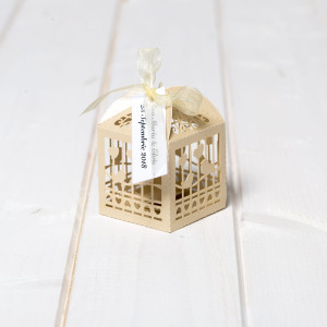 Disponibile in mai multe culori, cutiutele vrabii si inimi ivory sunt perfecte pentru o nunta in culori neutre, la care mireasa poarta o rochie de culoarea fildesului.
