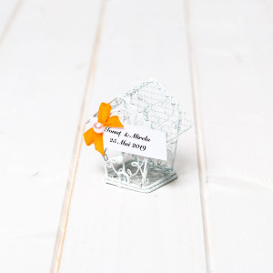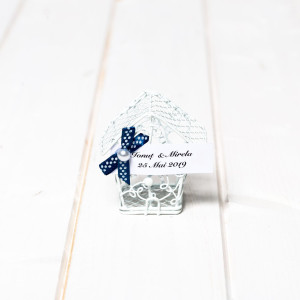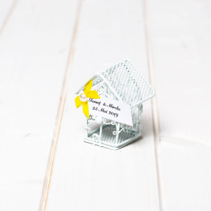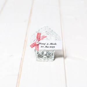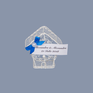 Marturiile de nunta casuta din sarma alba simbolizeaza primul camin al mirilor in calitate de sot si sotie. Acesta este redat prin intermediul unui cuib pentru pasari.