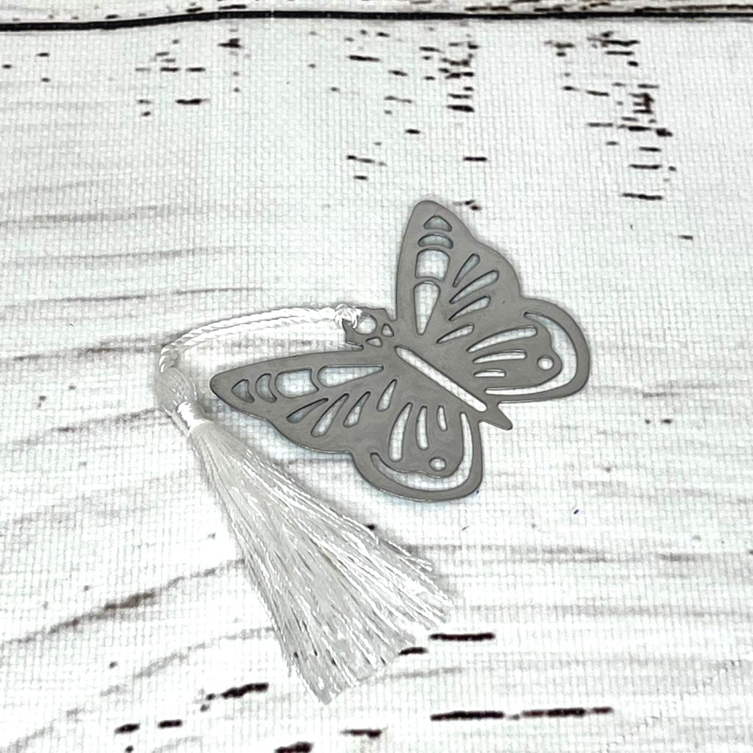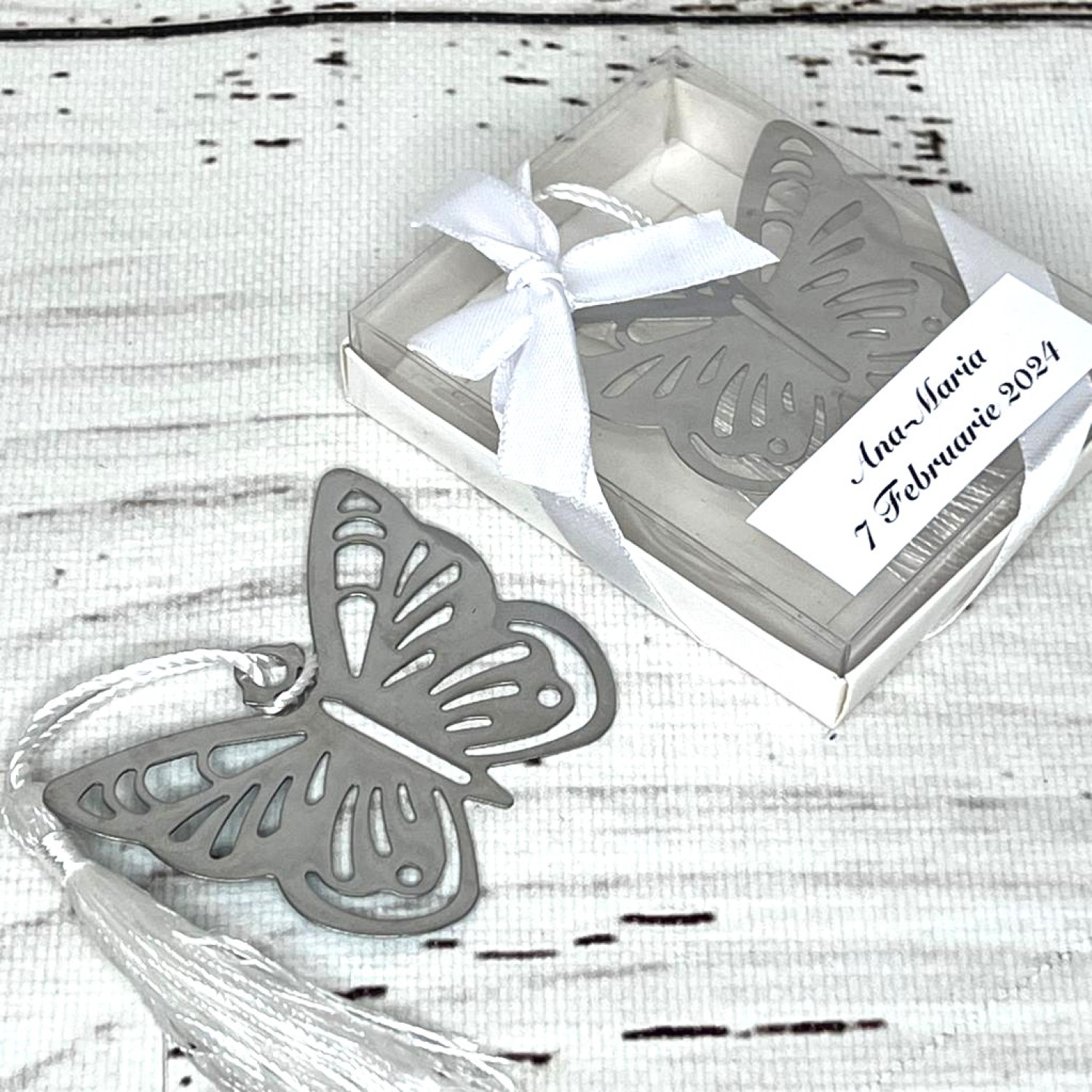 Semnele de carte fluture sunt realizate din metal argintiu.