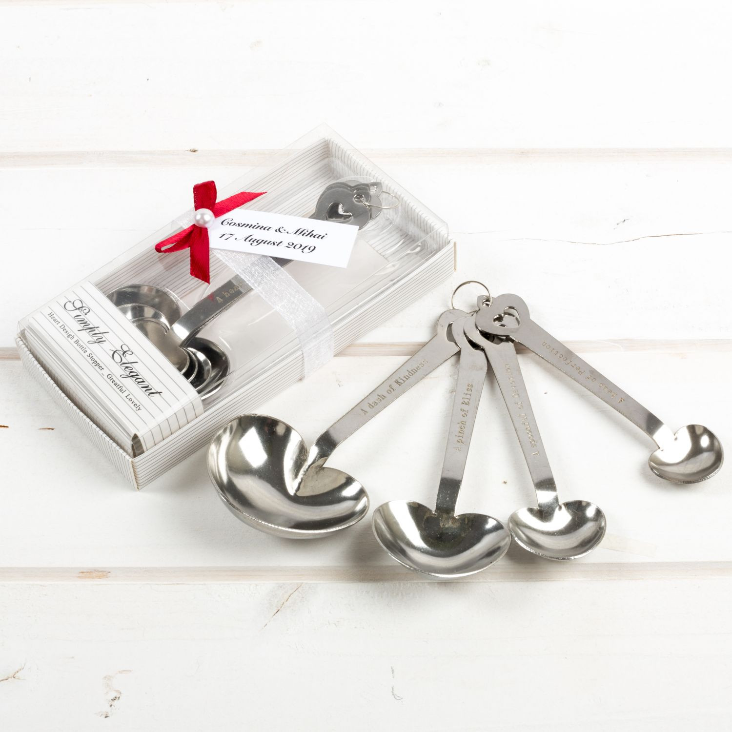 Set de 4 lingurite in forma de inima, cu un design fermecator si usor de utilizat, ce pot fi oferite in dar ca marturii de nunta.