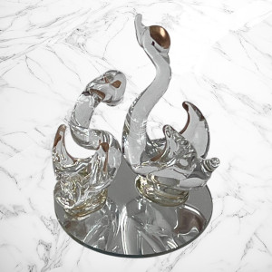 Lebedele stau pe un suport de sticla rotund cu diametrul de 4,5 cm. Marturiile lebada au inaltimea de 5,5 cm.