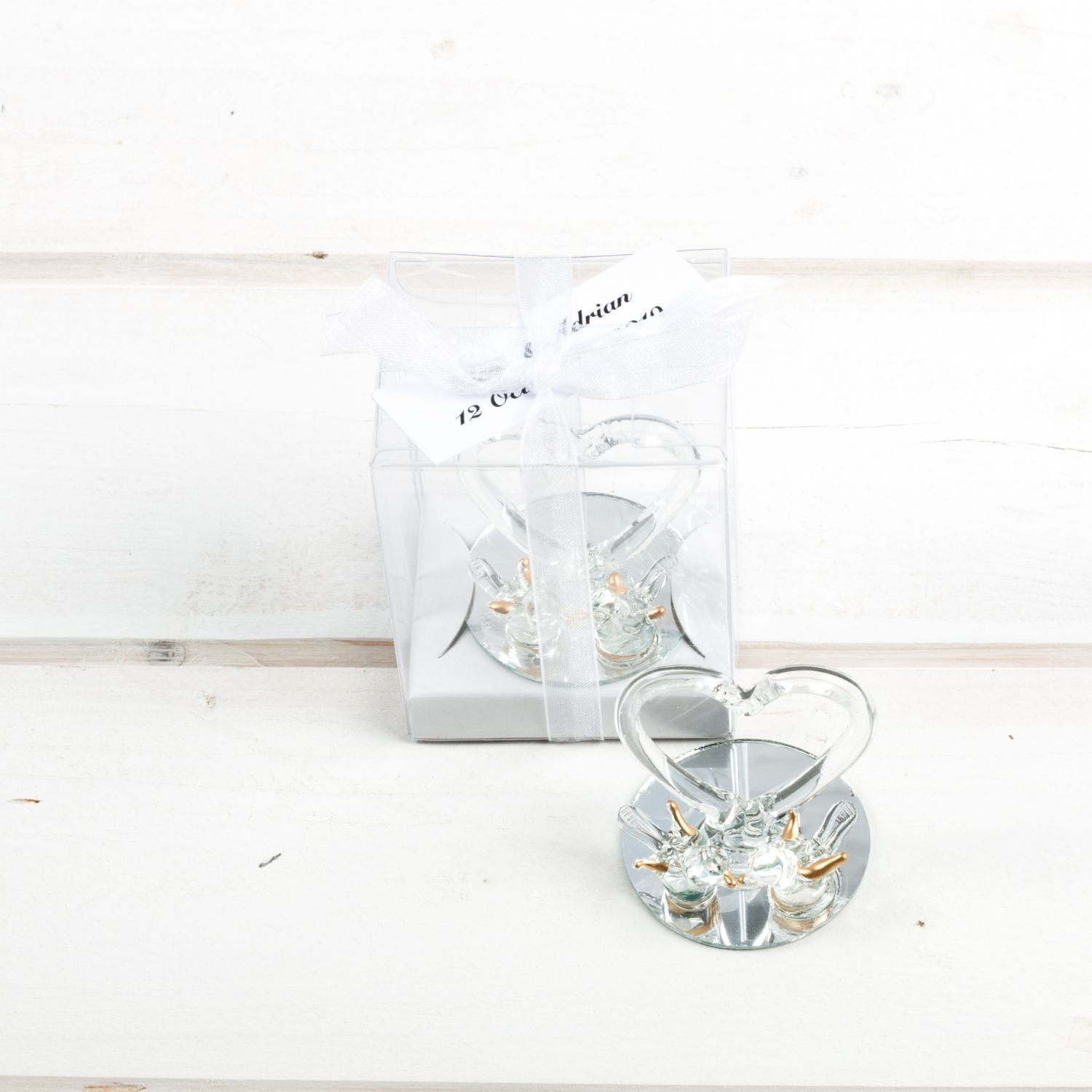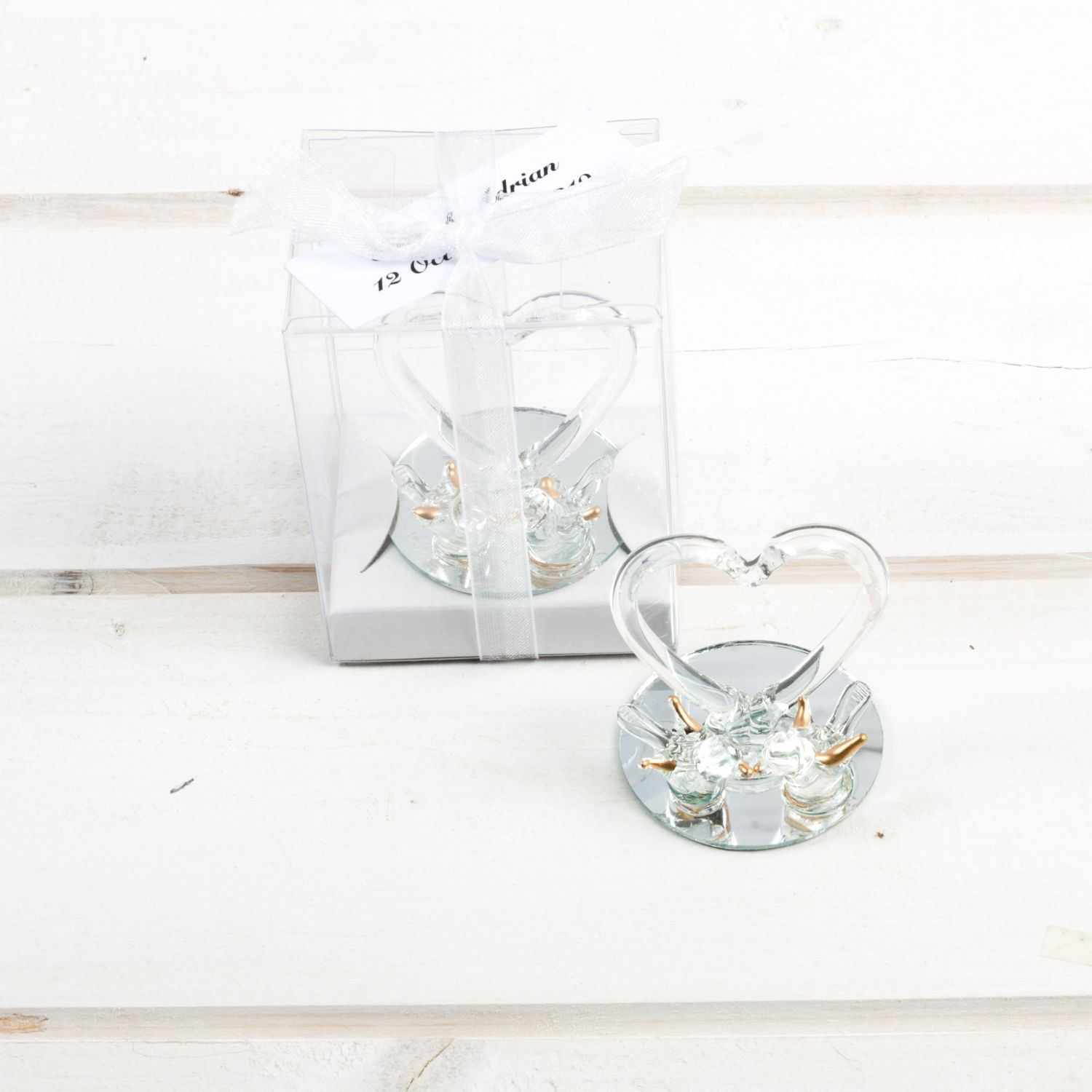 Completează decorul evenimentului tău special cu o mărturie elegantă și simbolică – o inimă din sticlă cu doi porumbei, reprezentând dragostea, armonia și unitatea. Această mărturie este perfectă atât pentru nunți, cât și pentru botezuri, oferind invitaților o amintire prețioasă.