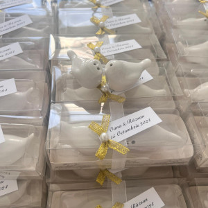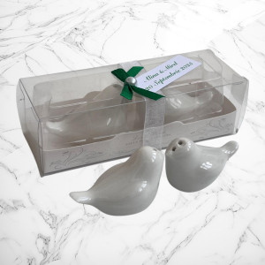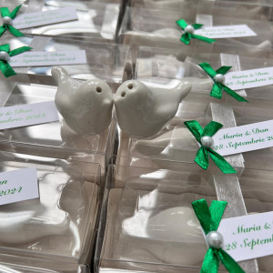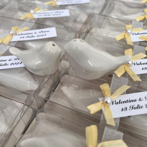 Completează decorul nunții tale cu un set elegant de solnițe în formă de porumbei! Aceste mărturii delicate reprezintă pacea, iubirea și armonia, fiind cadoul ideal pentru invitații tăi.