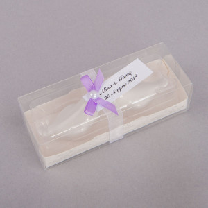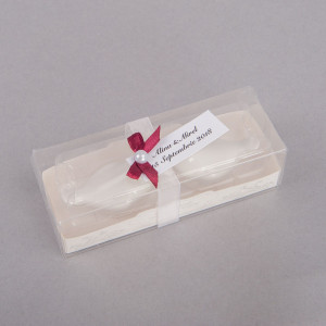 ✔ Ambalaj: Cutie transparentă cu fundiță și etichetă personalizabilă