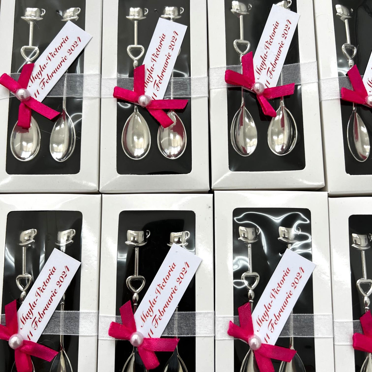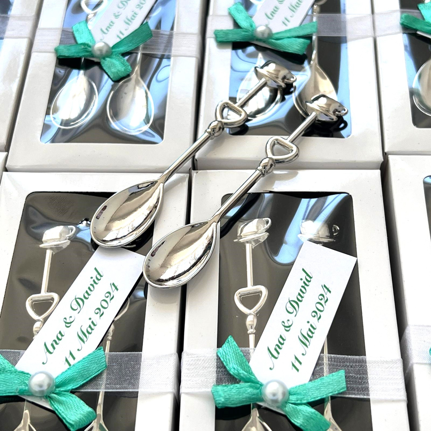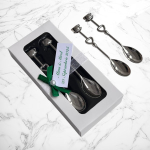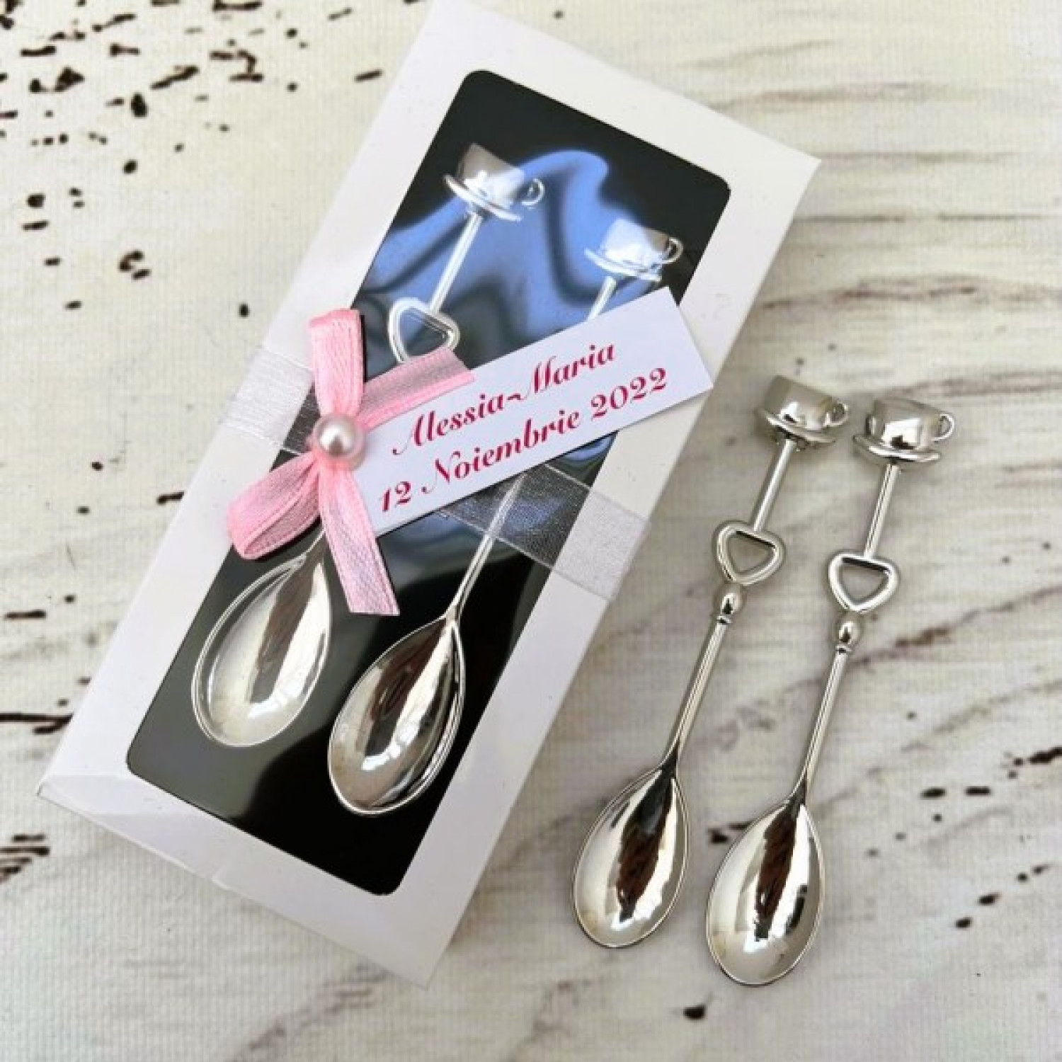 Transformă fiecare moment special într-o amintire de neuitat cu acest set elegant de lingurițe pentru cafea! Realizate din metal inoxidabil de calitate superioară, aceste lingurițe sunt un suvenir practic și rafinat pentru nunți și botezuri.