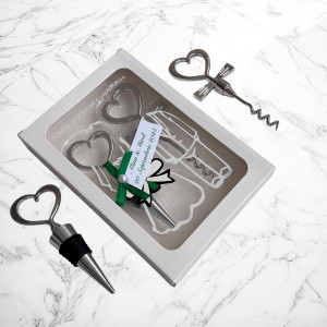 Un cadou elegant și util pentru invitații tăi, acest set format din dop de sticlă și tirbușon cu mânere în formă de inimă este o alegere rafinată pentru o nuntă romantică sau un botez memorabil! 🥂