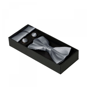 Papionul se poate prinde cu usurinta dupa gat, avand un sistem reglabil format din bareta si catarama, in timp ce batista din poliester si butonii de camasa din material textil si otel inoxidabil adauga unicitate tinutei.