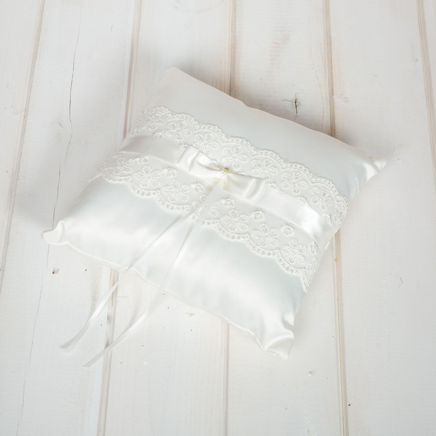 In mijlocul funditei, pernuta de verighete are o floricica delicata cu margele si cristal.