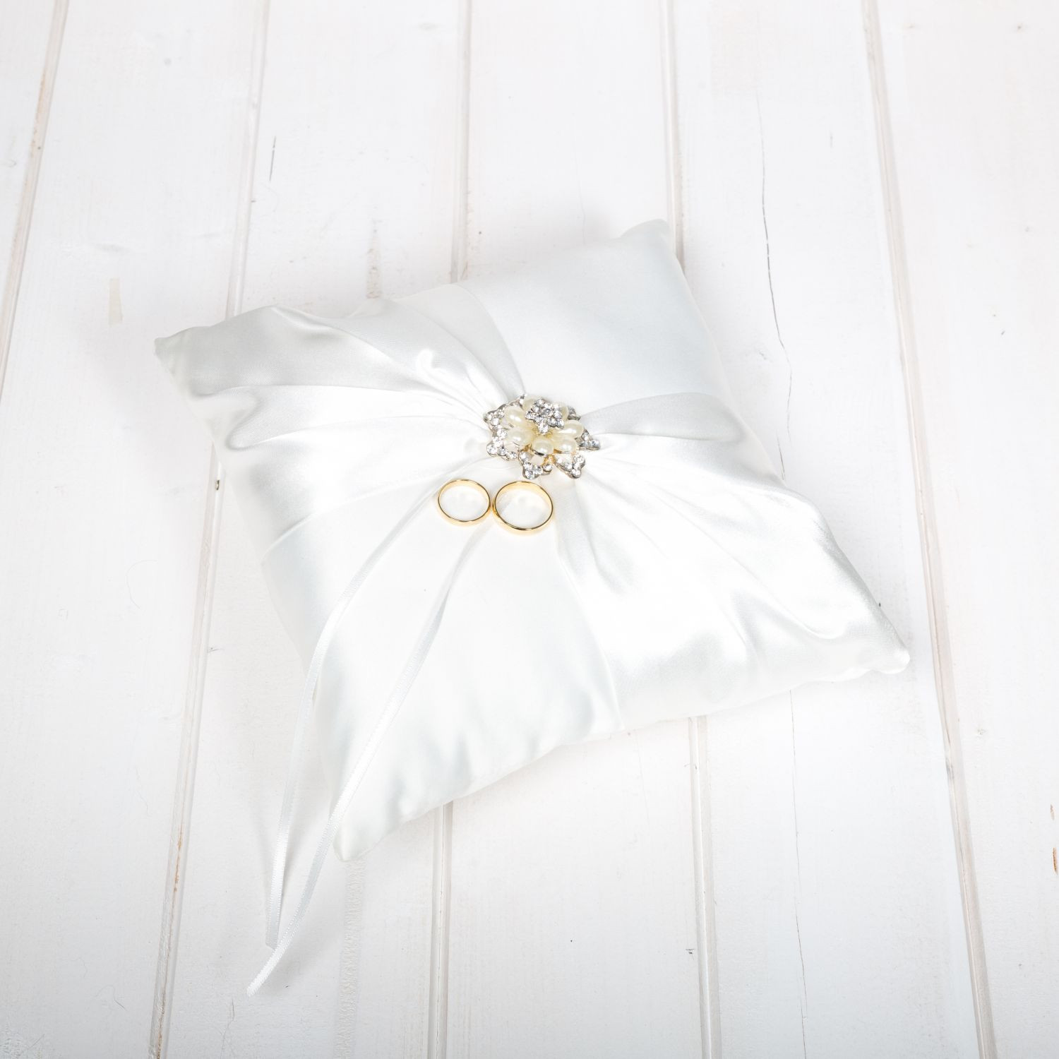 De mijlocul pernutei sunt prinse doua snururi de care se fixeaza verighetele mirilor. Frumoasa pernuta de verighete are finisaje de inalta calitate. O poti asorta cu un cosulet de petale cu floare la biserica, pe care il poti achizitiona separat.