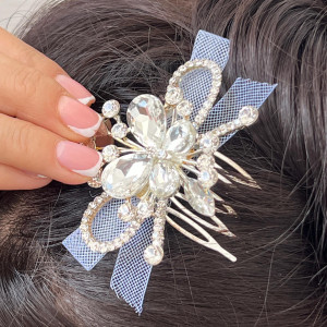 Daca esti o mireasa de primavara care adora accesoriile de par glam, poti sa alegi un set de piepteni cu fluturas, realizati din otel inoxidabil de culoare argintie.