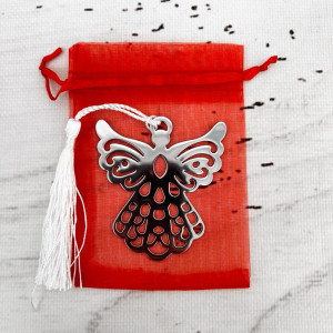 Mărțișorul semn carte ingeras are un design atractiv și este realizat dintr-un material rezistent, metal argintiu și au un snur alb in capat.