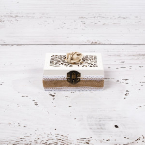Cutia pentru verighete are urmatoarele dimensiuni: 12 cm lungime, 7 cm latime, 5 cm inaltime
