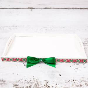 - tava cu decor banda traditionala si funda mare de culoare verde, cu perluta in mijloc,
