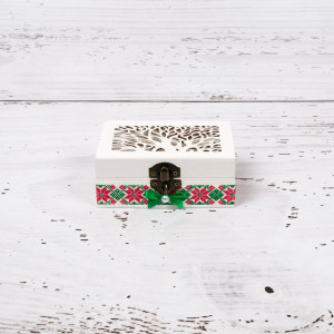 Toate articolelele din set sunt fabricate din lemn si decorate manual cu grund alb non-toxic si banda decorativa cu fundite asortate. Dupa nunta, mireasa va pastra cu drag articolele din set.