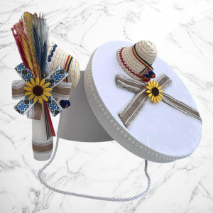 Comanda acum produsul "Set botez albastru cu motive tradiționale – Cutie pentru hăinuțe și lumânare".