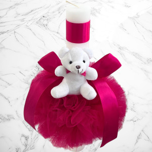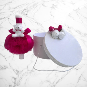 Comanda acum produsul "Set botez fucsia cu ursuleț – Cutie pentru hăinuțe și lumânare".