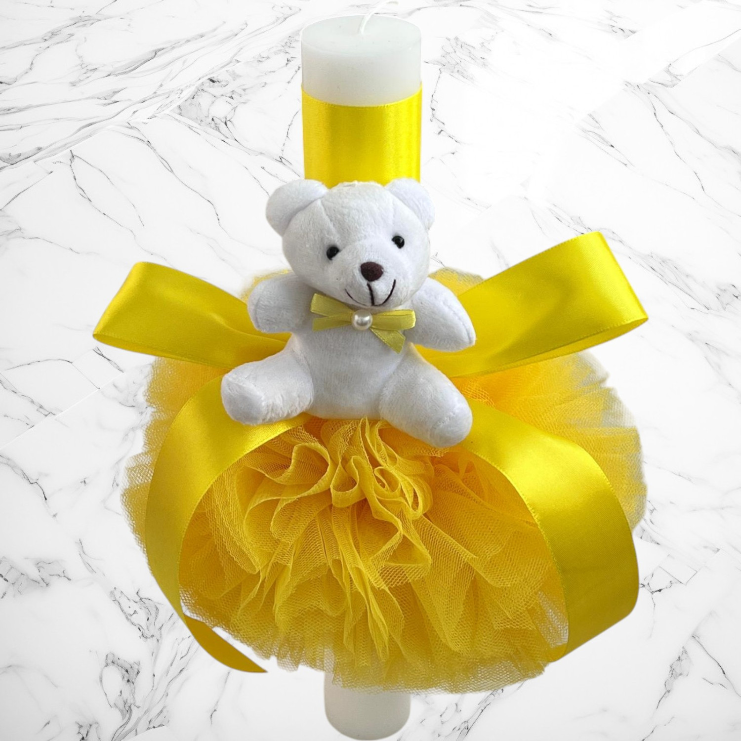 Comanda acum produsul "Set botez galben cu ursuleț – Cutie pentru hăinuțe și lumânare".