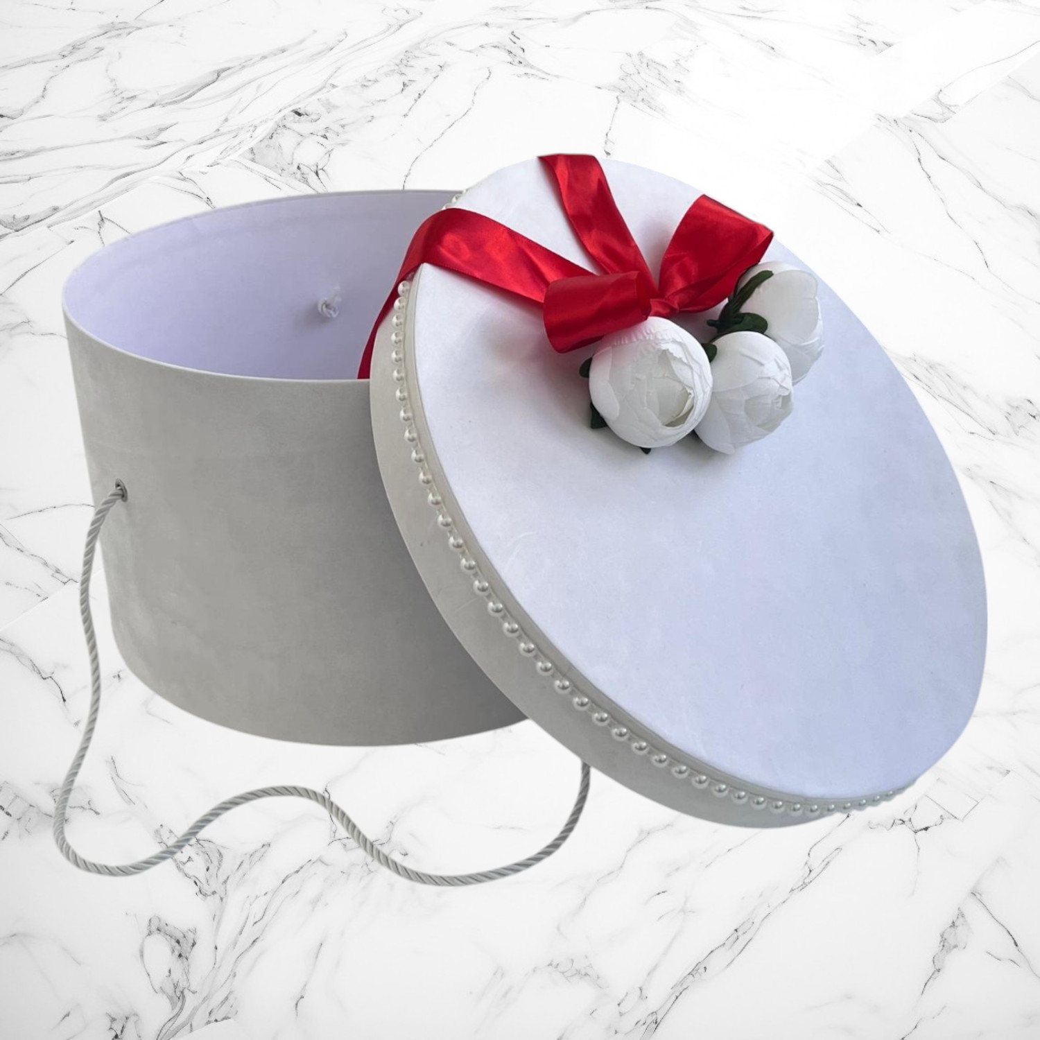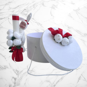 Comanda acum produsul "Set botez rosu cu bujori – Cutie pentru hăinuțe și lumânare".