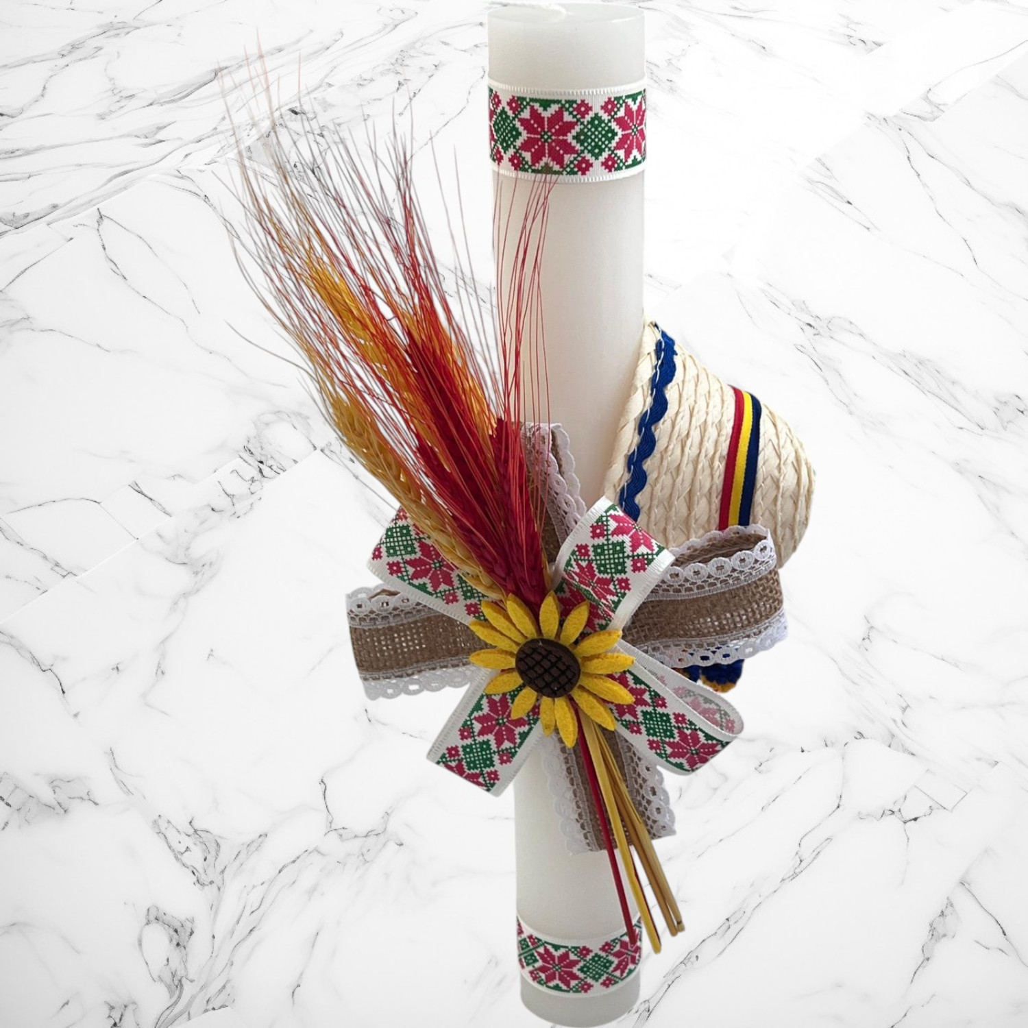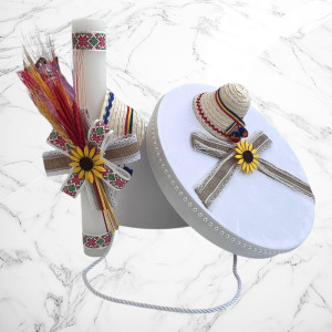 Comanda acum produsul "Set botez rosu cu motive tradiționale – Cutie pentru hăinuțe și lumânare".