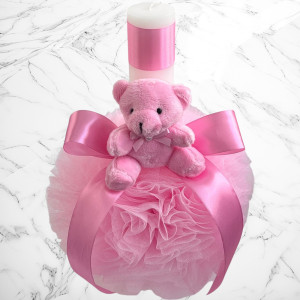 Comanda acum produsul "Set botez roz cu ursuleț – Cutie pentru hăinuțe și lumânare".