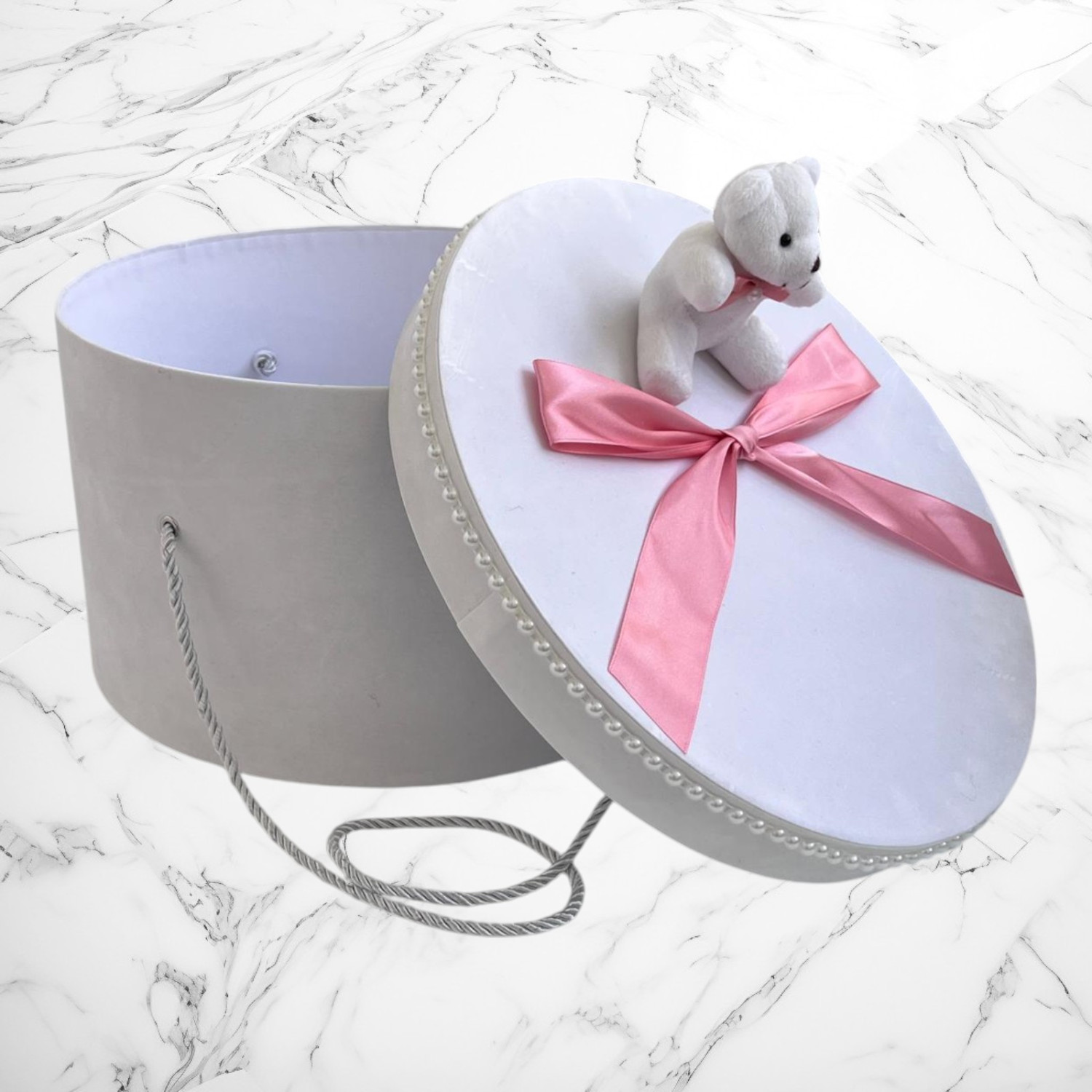 Comanda acum produsul "Set botez roz pudra cu ursuleț – Cutie pentru hăinuțe și lumânare".