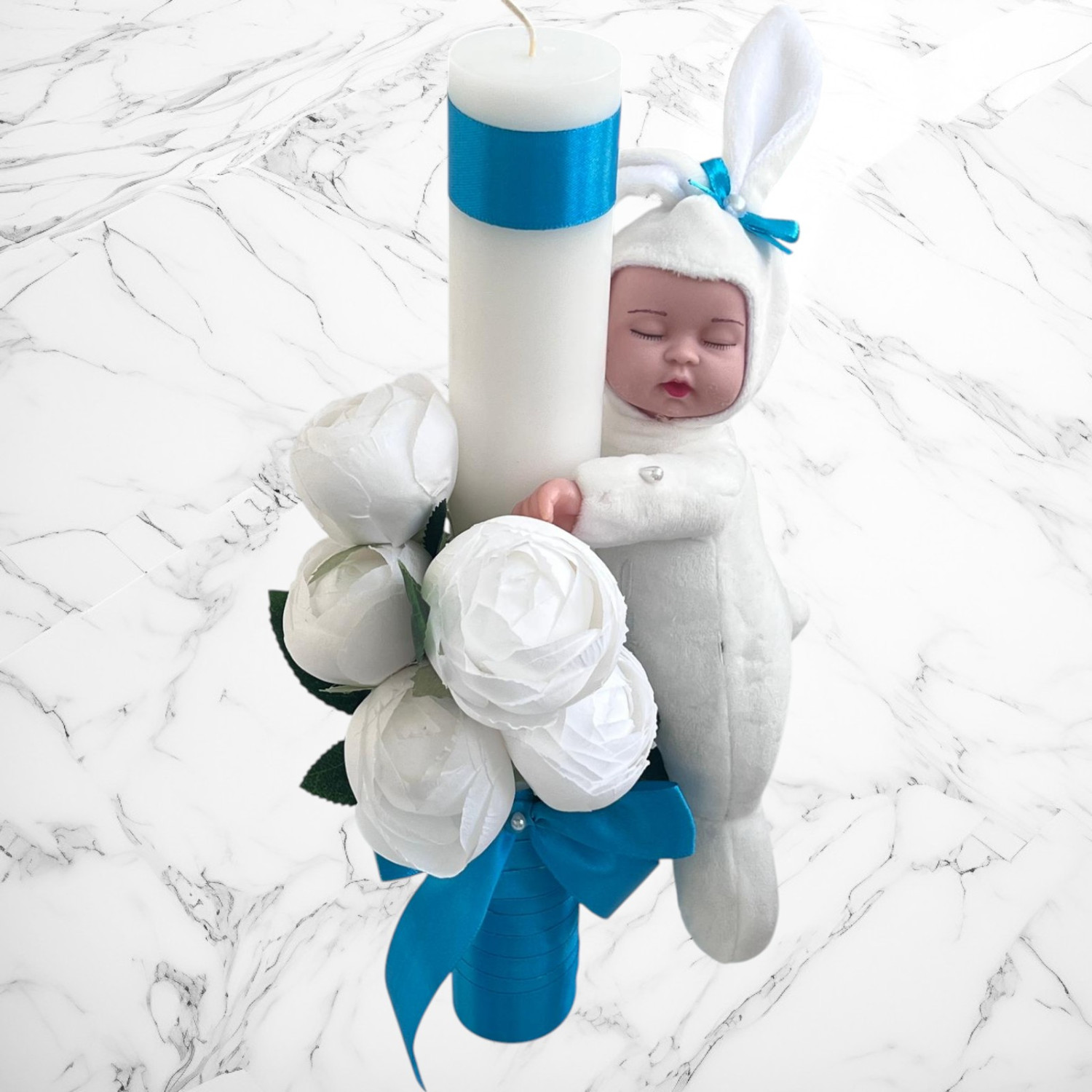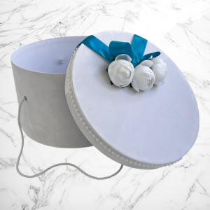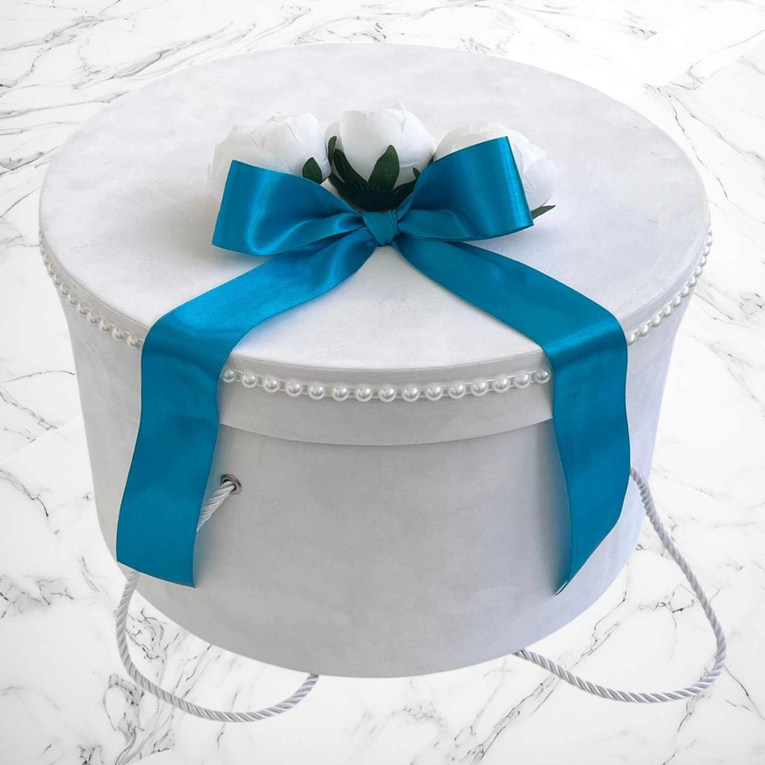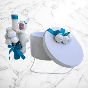Comanda acum produsul "Set botez turcoaz cu bujori – Cutie pentru hăinuțe și lumânare".