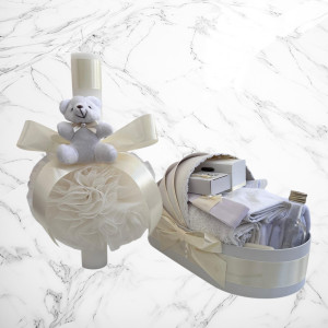 Set botez lumânare și trusou Cu drag de la nași – ivory