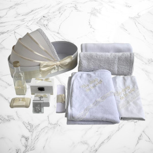 Comanda acum produsul "Set botez lumânare și trusou Cu drag de la nași – ivory".