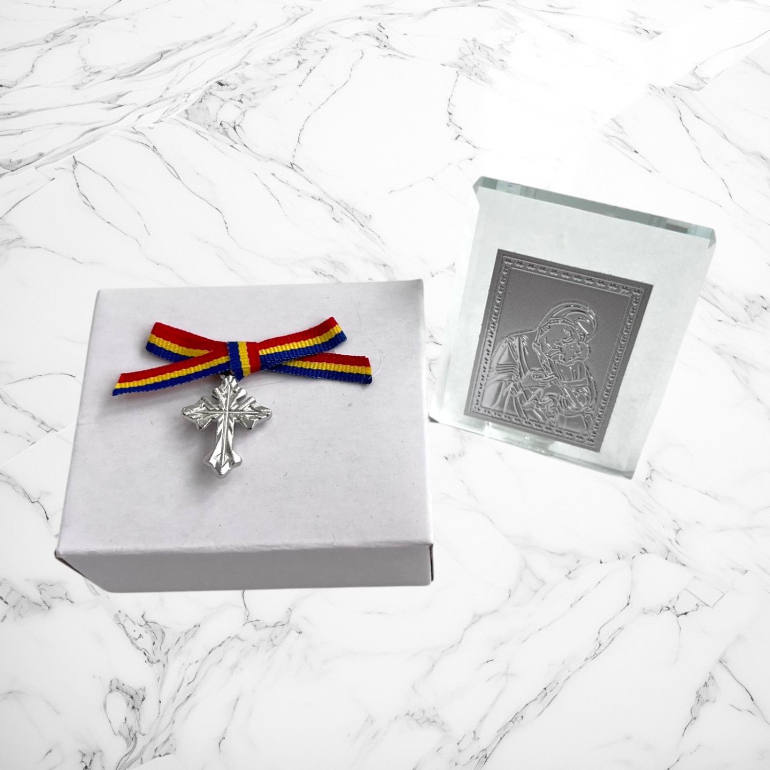 Cruciulite botez biserica cu fundita ivory + 1.74 Lei