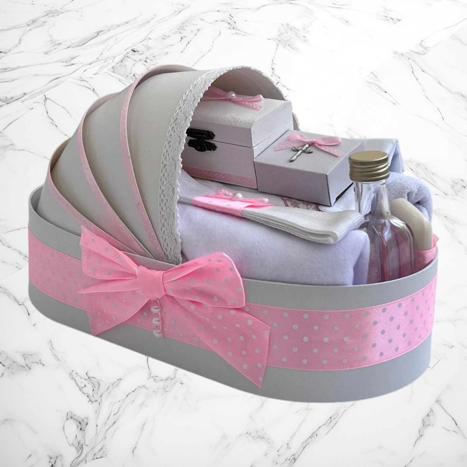 Cosulet cruciulite botez cu dantela + 60.25 Lei