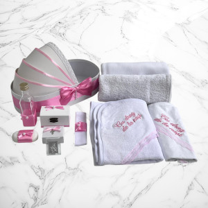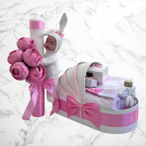 Comanda acum produsul "Set botez lumânare și trusou Cu drag de la nași - bebeluș roz".
