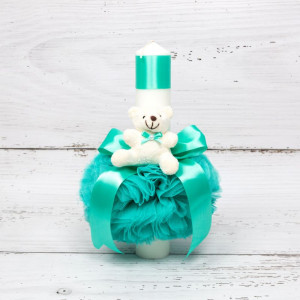 Decor: Manual, cu pampon din tulle, panglică din satin și ursuleț de pluș detașabil