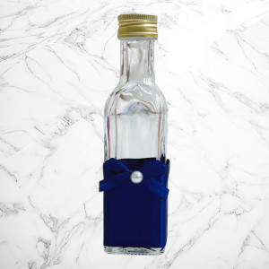 💧 Sticluța pentru mir – îmbrăcată în satin, perfectă pentru uleiul sfințit.