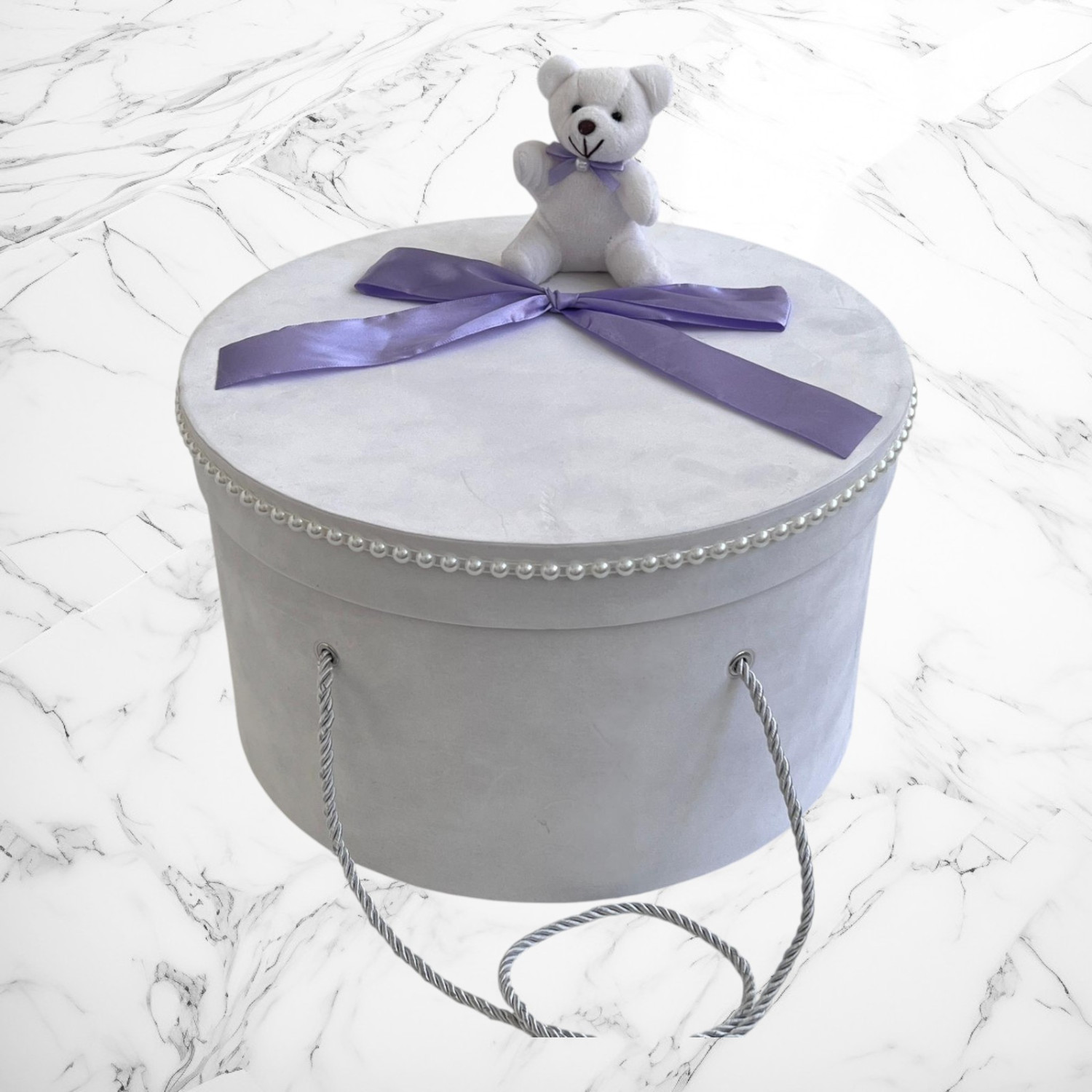 Decor: Manual, cu pampon din tulle, panglică din satin și ursuleț de pluș detașabil