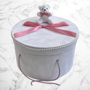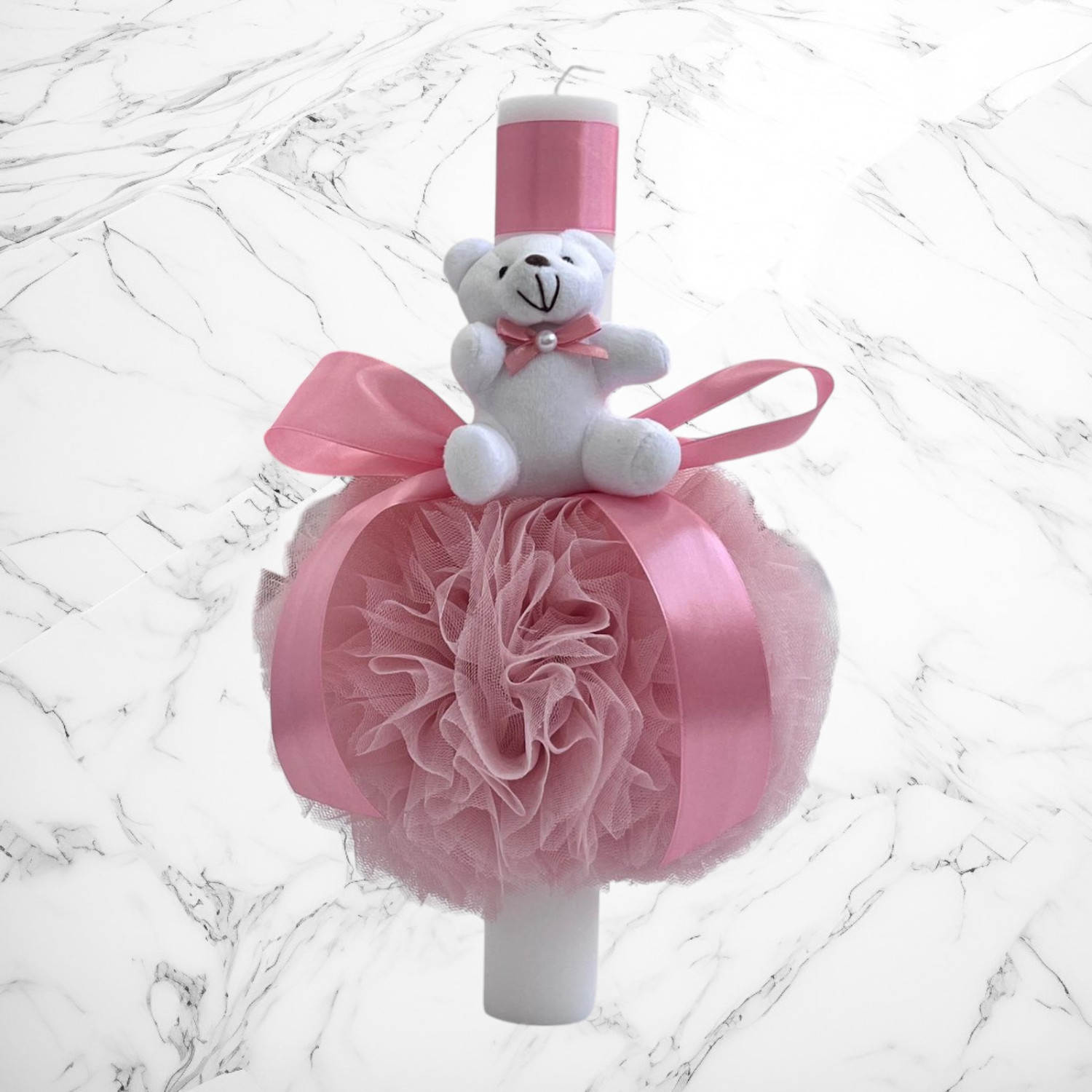 Comanda acum produsul "Set botez Lumânare, Trusou, Cutie hainuțe Cu drag de la nași – roz pudră".