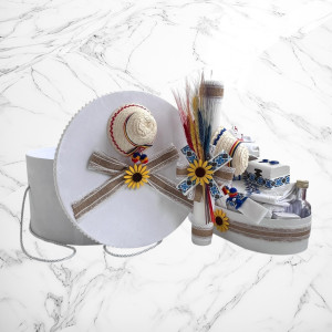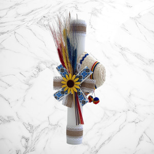 Alege un set de botez tradițional, cu design autentic românesc, perfect pentru ceremonia de creștinare a micuțului tău. Setul conține o lumânare decorată cu motive populare și un trusou complet, realizat din materiale de înaltă calitate, cu dantelă și broderii fine și o cutie pentru hăinuțe.👶✨